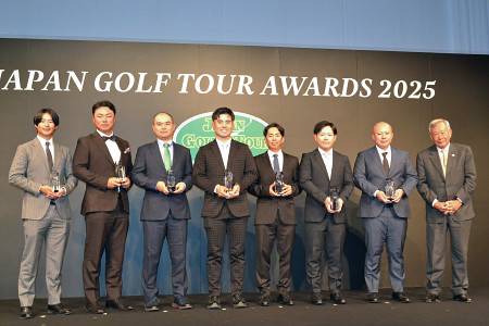 国内男子ゴルフツアーの表彰式が8日、東京都内で行われ、初の賞金王に輝いた金子駆大(23)が最優秀選手賞を受賞した。パーキープ率賞、ゴルフ記者賞も含めて4冠となった。 【時事通信社】