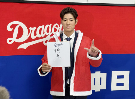 中日の上林は、今季年俸1750万円の2.5倍を超える4600万円でサイン。ソフトバンクを戦力外となり、中日に移って2シーズン目で7年ぶりに規定打席に到達。(金額は推定)=25日、ナゴヤ球場 【時事通信社】