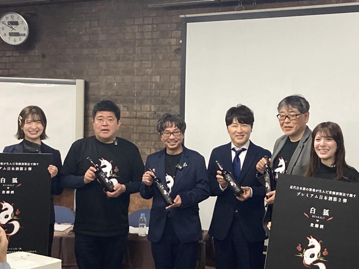 東京都北区観光協会(北区王子1)が12月3日、日本酒「白狐(びゃっこ)」の試飲発表会を赤煉瓦酒造工場(滝野川2)で開催した。