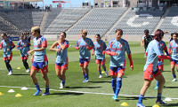 新荒川大橋緑地(北区赤羽3)でソメイヨシノに続き、芝桜が現在、河川敷を散歩する人やランニングする人たちの目を楽しませている。
