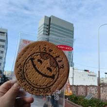 イトウ製菓(北区田端6)が「ビスケットの日」の2月27日、ふれあい橋(北区田端1)で同社のビスケット「でかビス」を無料配布するイベントを行った。